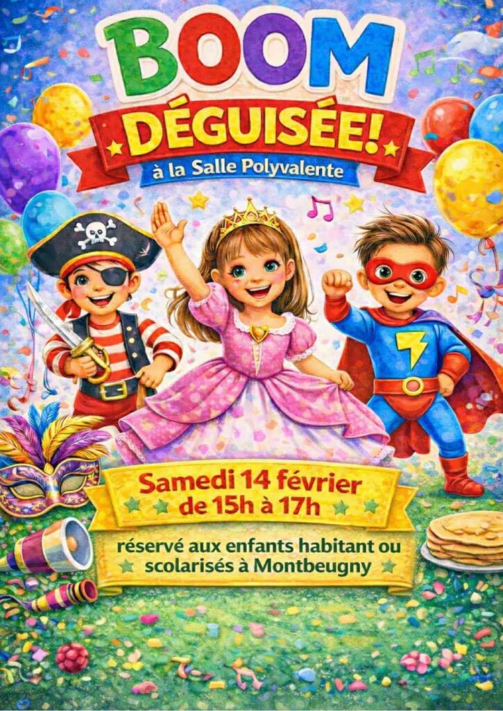 Boom déguisée des MômesPar A M / 14 février 2026 Quand 14 février 2026 15h00 - 17h00 Ajouter au Calendrier Télécharger ICS Calendrier Google iCalendar Office 365 Outlook Live Type d’évènement Manifestations associations