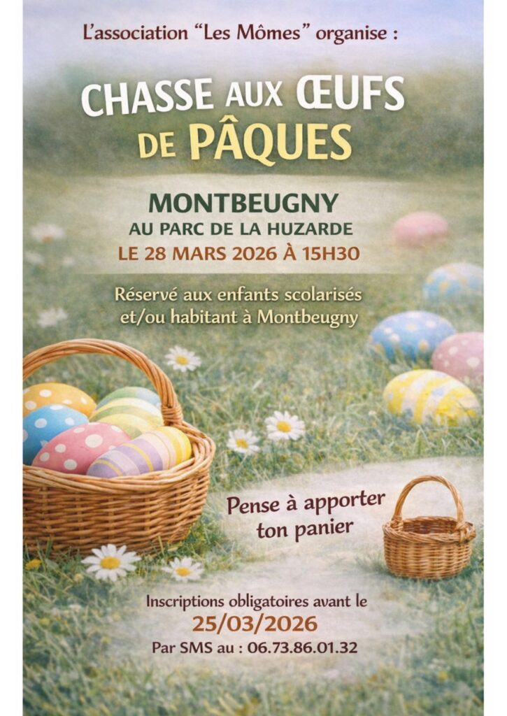Chasse aux oeufs de Pâques des MômesPar A M / 28 mars 2026 Quand 28 mars 2026 15h30 Ajouter au Calendrier Télécharger ICS Calendrier Google iCalendar Office 365 Outlook Live Type d’évènement Manifestations associations