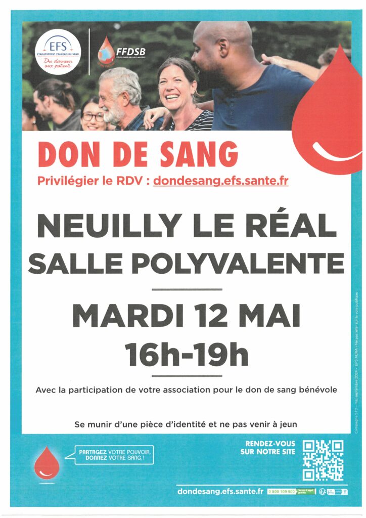 Don du sangPar A M / 12 mai 2026 Quand 12 mai 2026 16h00 - 19h00 Ajouter au Calendrier Télécharger ICS Calendrier Google iCalendar Office 365 Outlook Live Type d’évènement Manifestations associations