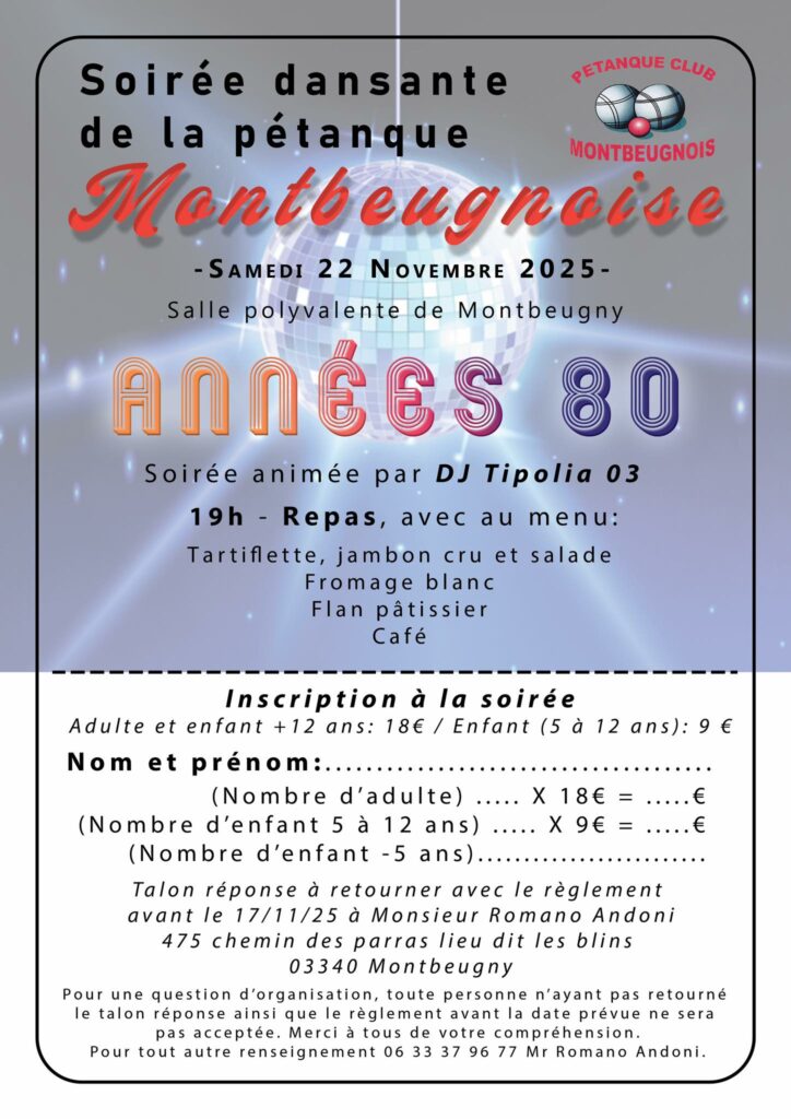 Soirée tartiflette du Pétanque Club MontbeugnoisPar A M / 22 novembre 2025 Quand 22 novembre 2025 - 23 novembre 2025 19h00 - 4h00 Ajouter au Calendrier Télécharger ICS Calendrier Google iCalendar Office 365 Outlook Live Type d’évènement Manifestations associations